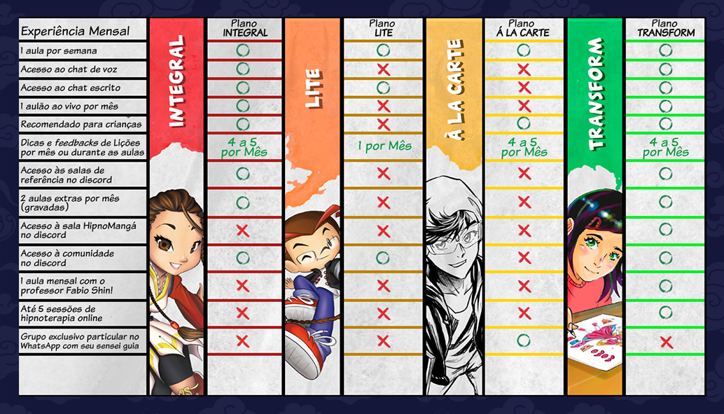 Os planos presenciais das aulas são em grupo e também Planos Integral, Lite e Transform e tenho certeza que você irá adorar fazer novas amizades com nossos alunos do mundo inteiro no online!